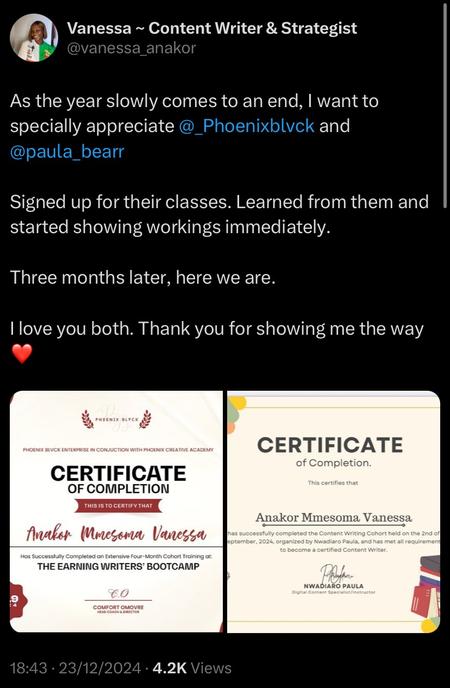 "Her writing quality is exceptional and perfectly aligned with our brand voice"